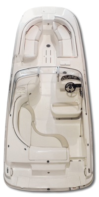 One-piece fiberglass deck & floor w/self bailing